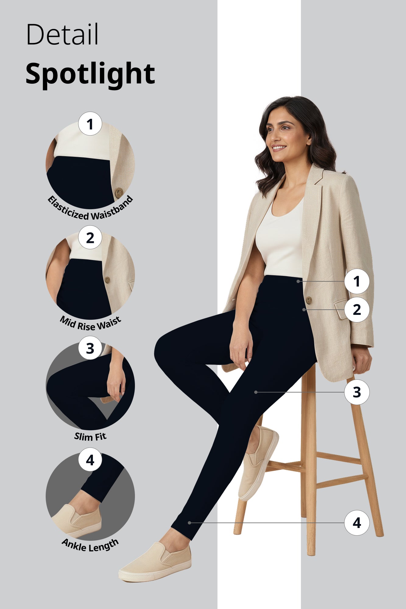 Infused with the essence of the 16 Sanskaras, the Dark Navy Cotton Ankle Length Leggings from Fabrika16 combine everyday comfort with subtle cultural inspiration. Crafted from soft, smooth cotton, these ankle-length leggings offer a sleek, body-hugging fit that moves with you. The versatile dark navy hue makes them ideal for casual outings, workdays, or pairing with ethnic tunics and kurtis, delivering a perfect blend of style and practicality.