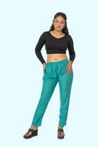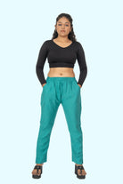 Infused with the subtle elegance of the 16 Sanskaras, the Dark Seafoam Cotton Rayon Silk Pants from Fabrika16 blends comfort, sophistication, and cultural inspiration. Fashioned from a soft cotton-silk blend, these pants feature a smooth drape and gentle sheen, providing a flattering, flexible fit. The deep seafoam hue adds a refreshing and versatile charm, making them perfect for casual outings, semi-formal events, or pairing with contemporary and ethnic ensembles.