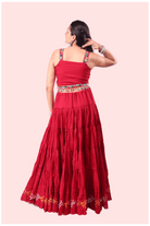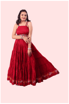 Stand out with the Maroon Cotton Golden Block Print 20Mtr Skirt from Fabrika16. Crafted from soft, breathable cotton, this voluminous skirt features striking golden block prints that create a dramatic and elegant look. Reflecting the spirit and celebration of the 16 Sanskaras, it is perfect for dance, weddings, or statement styling, blending comfort with a fashion-forward silhouette for unforgettable occasions.