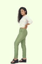 Inspired by the cultural heritage of the 16 Sanskaras, the Mehandi Cotton Rayon Silk Pants from Fabrika16 combines classic elegance with modern comfort. Crafted from a soft cotton-silk blend, these pants feature a subtle sheen and fluid drape that flatters your form while allowing effortless movement. The earthy mehandi tone adds versatility and understated charm, making them ideal for casual outings, semi-formal occasions, or styling with both contemporary and traditional ensembles.