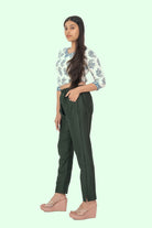 Echoing the harmonious essence of the 16 Sanskaras, the Military Green Cotton Rayon Silk Pants from Fabrika16 blends refined style with practical comfort. Fashioned from a soft cotton-silk blend, these pants feature a subtle sheen and fluid drape, providing a flattering fit that moves with ease. The deep military green hue lends a versatile, understated elegance, perfect for casual outings, semi-formal occasions, or styling with both modern and traditional ensembles.