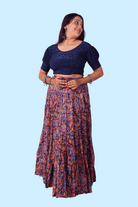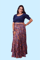 Add a touch of artistry to your wardrobe with the Multi Cotton Kalamkari Print Skirt from Fabrika16. Designed from soft cotton and featuring traditional Kalamkari block prints, this skirt blends heritage craftsmanship with contemporary style. The intricate designs celebrate the spirit and cultural richness of the 16 Sanskaras, telling a story of tradition and elegance. Perfect for festive occasions, casual outings, or any event where you want to stand out with style and tradition.