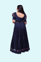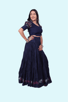 Turn heads with the Navy Blue Cotton Golden Block Print Skirt from Fabrika16. Rich cotton fabric sets the stage for luminous golden patterns that shimmer with festive energy. The expansive 20-meter flare creates a dramatic flow, making it an effortless favorite for grand celebrations, traditional dances, or statement-making evenings. Drawing inspiration from the 16 Sanskaras, this skirt captures cultural depth while offering a strikingly modern presence.