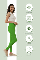 Inspired by the 16 Sanskaras, the Parrot Green Ankle Length Leggings from Fabrika16 bring a lively and refreshing touch to everyday wear. Made from soft, breathable cotton, these ankle-length leggings provide a sleek fit that moves comfortably with you. The vibrant parrot green shade adds energy and elegance, making them perfect for pairing with ethnic or contemporary tops for casual, festive, or office occasions.