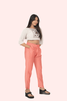 Inspired by the refined elegance of the 16 Sanskaras, the Peach Cotton Rayon Silk Pants from Fabrika16 blends luxurious texture with everyday comfort. Fashioned from a soft cotton-silk blend, these pants offer a gentle sheen and smooth drape, delivering a flattering fit that moves gracefully. The subtle peach tone adds a fresh, versatile charm, making them ideal for casual outings, semi-formal occasions, or layering with contemporary and ethnic ensembles.