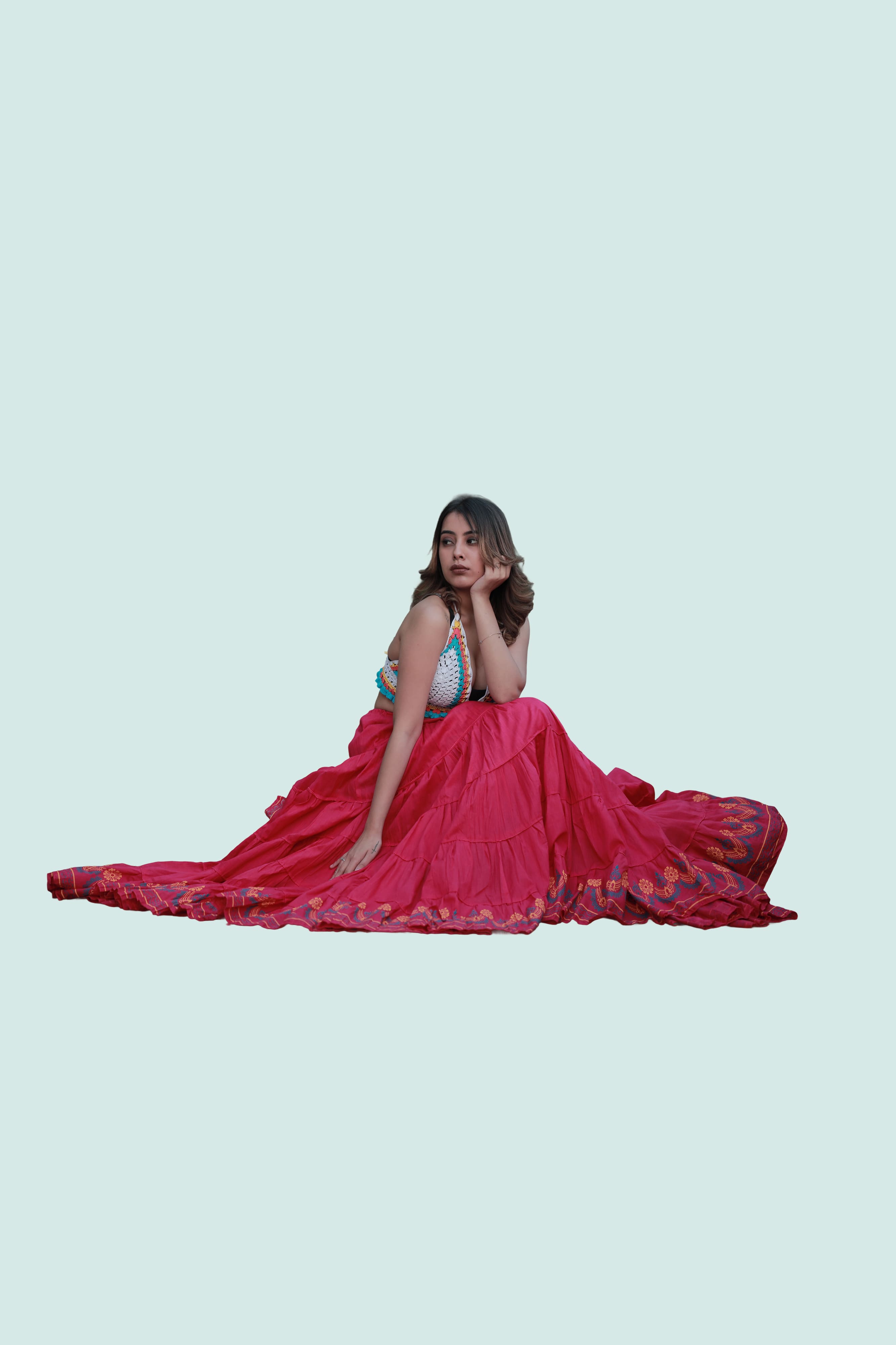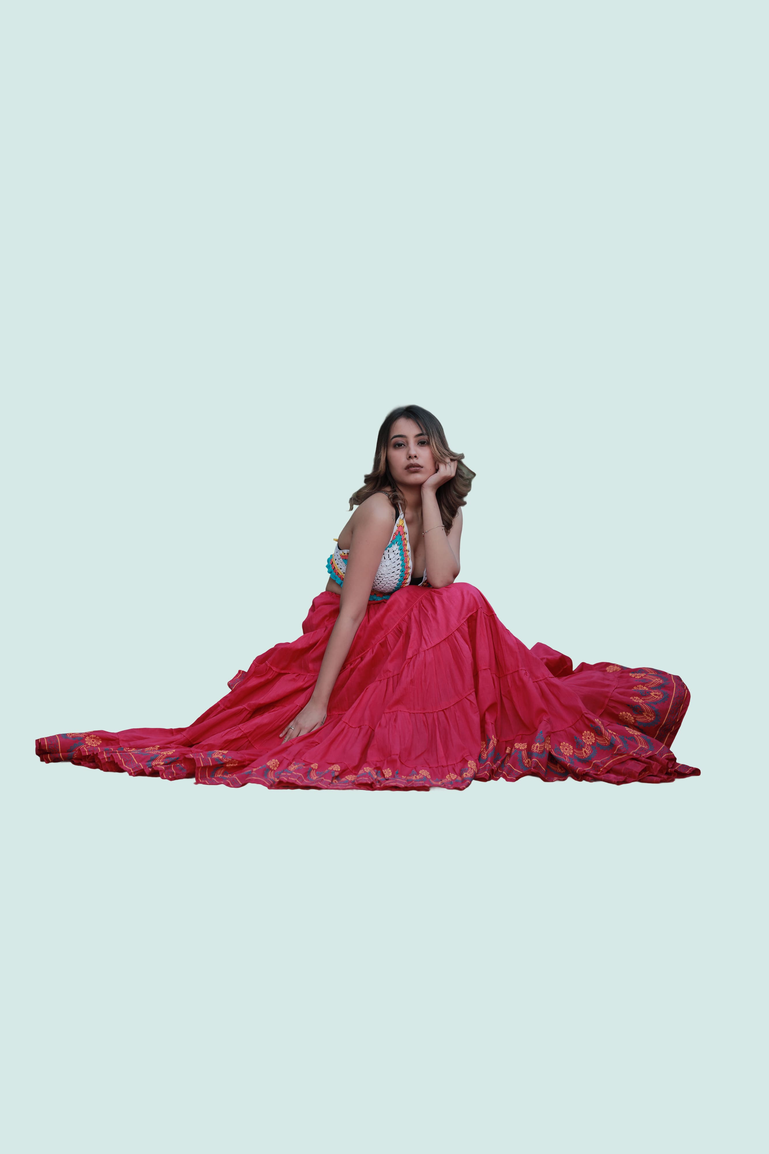 Flaunt your confident style with the Pink Cotton Golden Block Print 20Mtr Skirt from Fabrika16. Crafted using soft, breathable cotton, this voluminous skirt features delicate golden block prints that bring a sophisticated, regal charm to your look. Drawing inspiration from the legacy of the 16 Sanskaras, it works beautifully for festive celebrations, wedding functions, or creating a standout ensemble, offering effortless ease and a flowing, graceful shape.