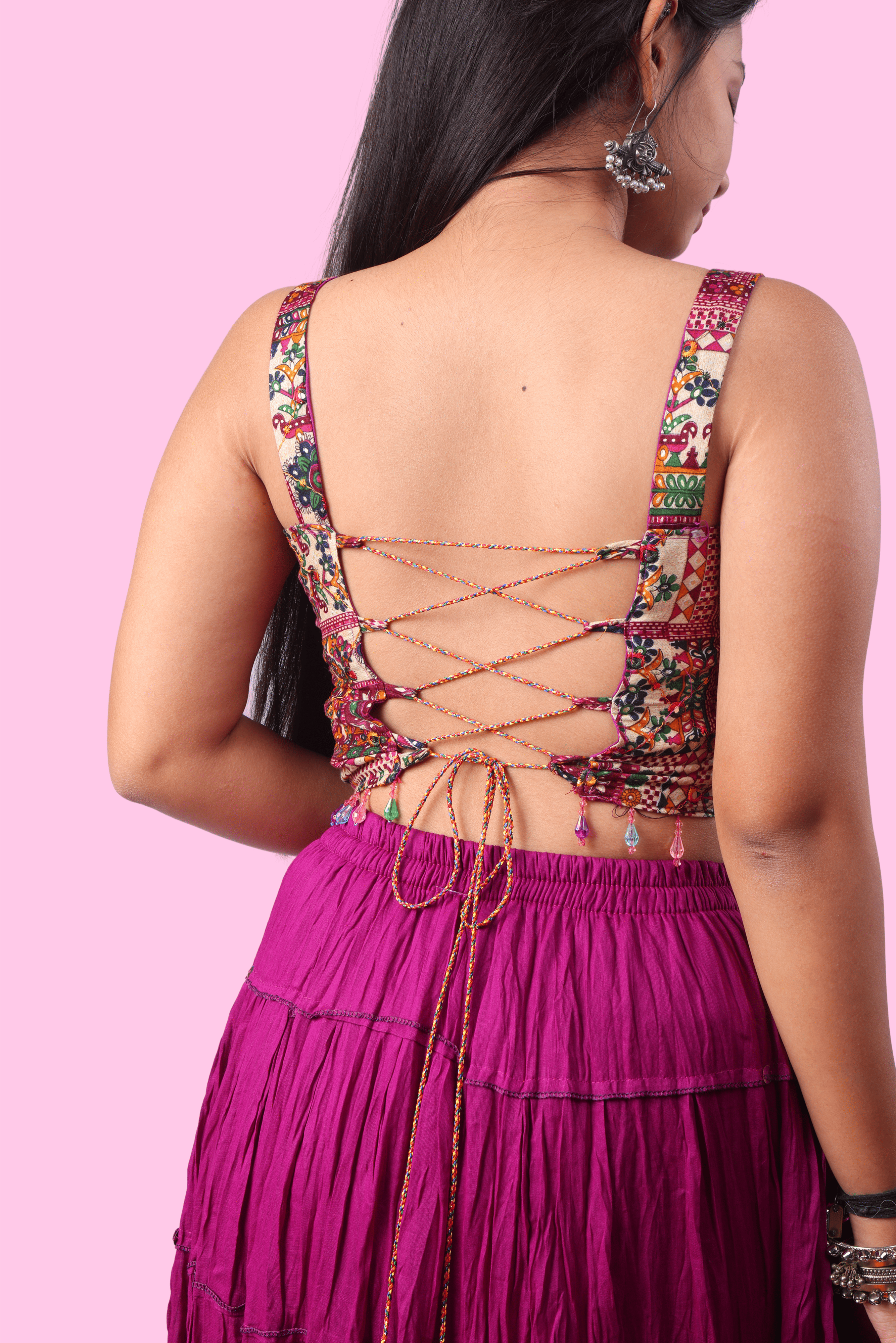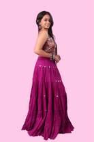 Step into celebration with the Purple Cotton Solid Silver Sequin 10Mtr Skirt from Fabrika16. Shaped from luxuriously soft cotton and decorated with sparkling silver sequins, this skirt offers a festive flair while drawing from the rich heritage and meaningful traditions of the 16 Sanskaras. Its flowing 10-meter length creates dynamic movement, perfect for parties, dance performances, and special gatherings.