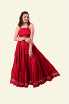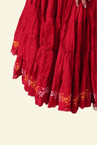 Turn every moment into a celebration with the Red Cotton Golden Block Print 20Mtr Skirt from Fabrika16. Flowing layers of rich cotton are illuminated with golden motifs that capture the spirit of festivity. The expansive flare creates a captivating rhythm with every step, making it a natural choice for grand occasions, from vibrant dances to wedding gatherings. Inspired by the 16 Sanskaras, this skirt transforms cultural heritage into a bold expression of modern elegance.