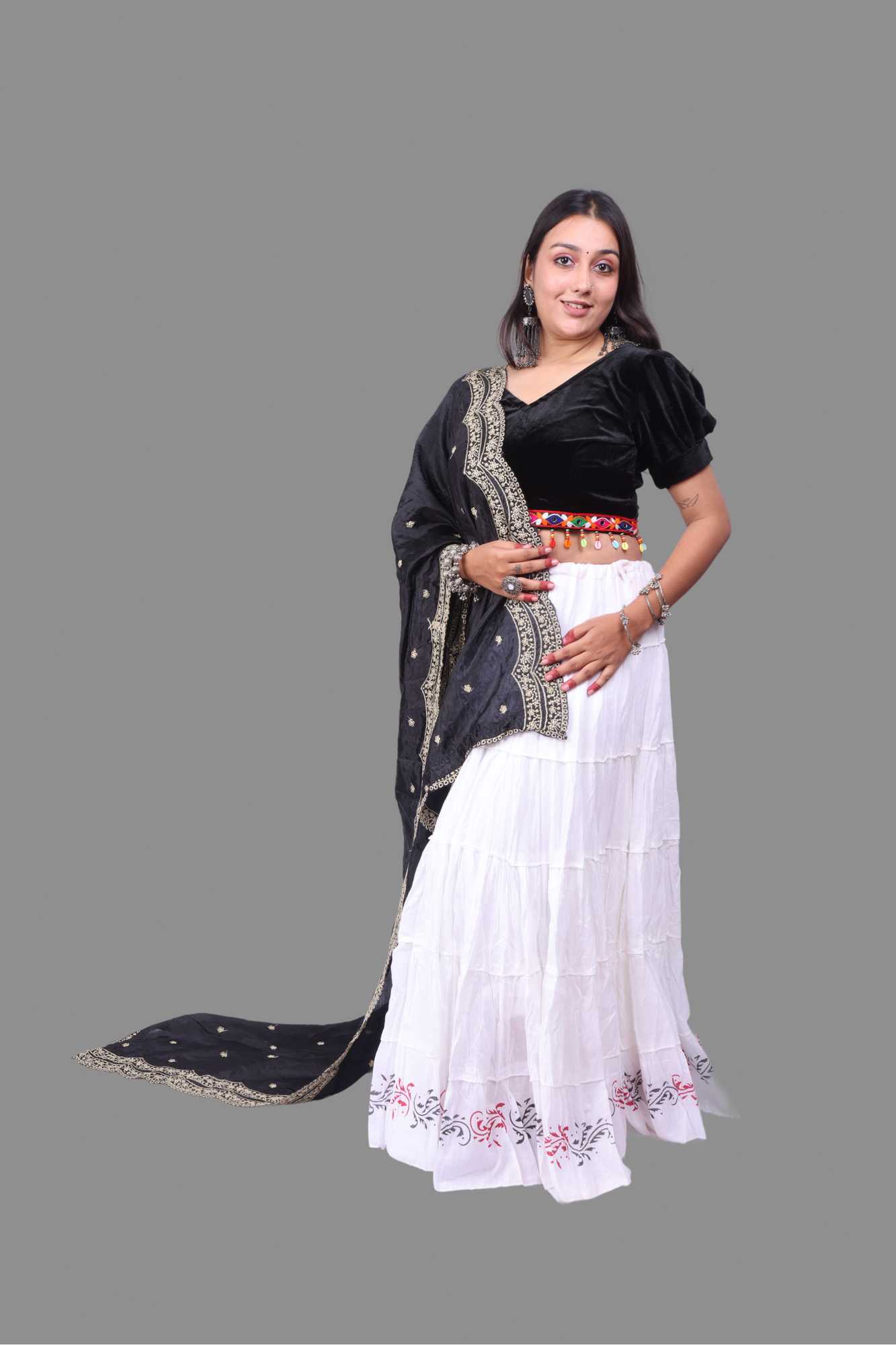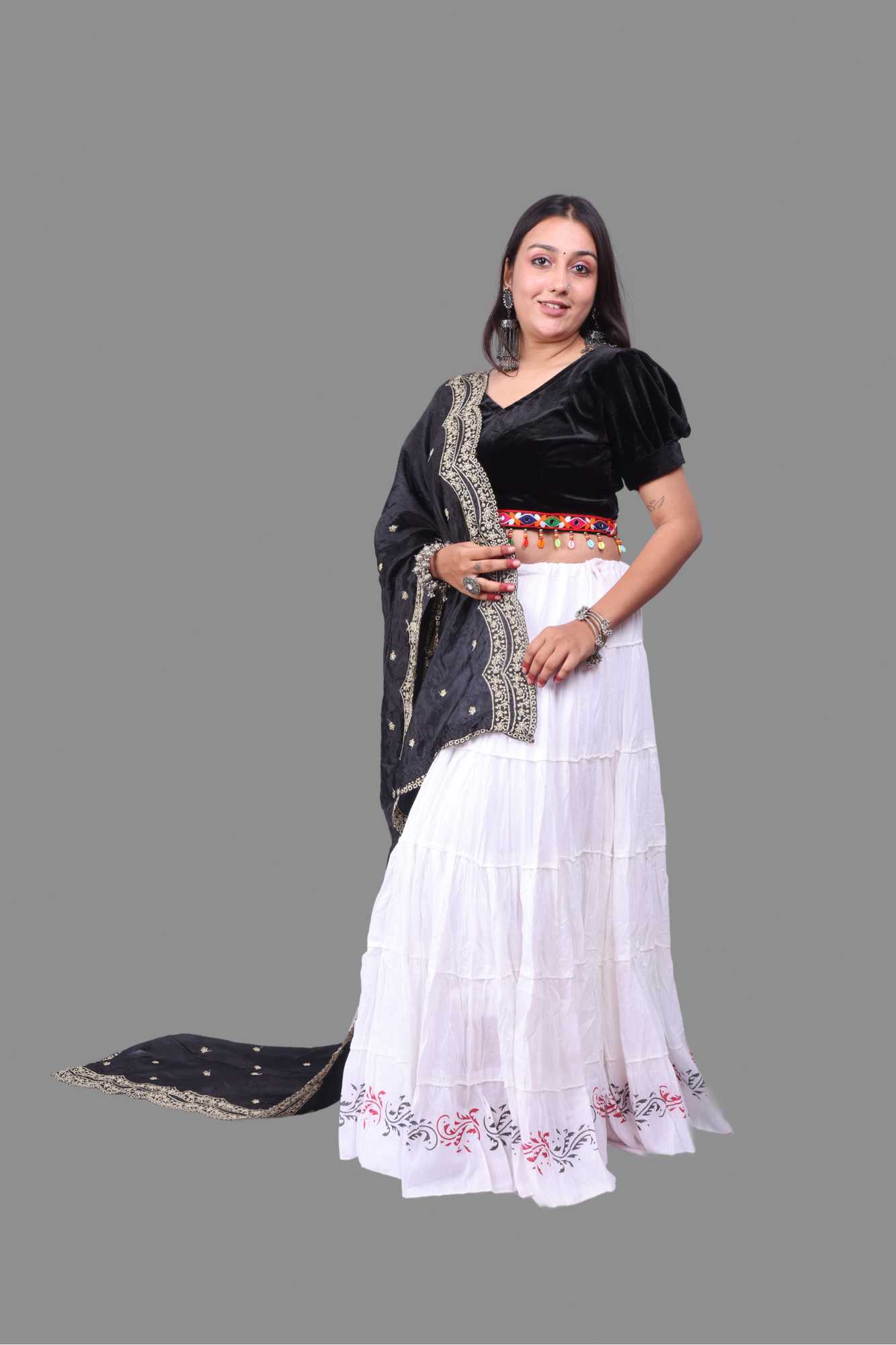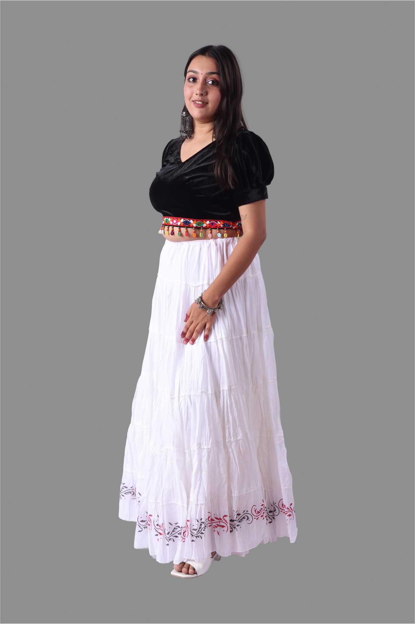 Step into effortless elegance with the White Cotton Golden Block Print 20Mtr Skirt from Fabrika16. Crafted from soft, breathable cotton, this voluminous skirt is adorned with intricate golden block prints that add a refined and festive charm. Rooted in the richness of the 16 Sanskaras, it is perfect for wedding celebrations, festive occasions, or creating a graceful ensemble, combining comfort with a flowing, easy-to-wear design.