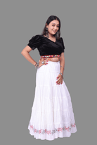 Step into effortless elegance with the White Cotton Golden Block Print 20Mtr Skirt from Fabrika16. Crafted from soft, breathable cotton, this voluminous skirt is adorned with intricate golden block prints that add a refined and festive charm. Rooted in the richness of the 16 Sanskaras, it is perfect for wedding celebrations, festive occasions, or creating a graceful ensemble, combining comfort with a flowing, easy-to-wear design.