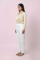 Experience understated refinement with the White Linen Pants from Fabrika16. Crafted from premium linen, this silhouette celebrates breathable comfort and natural texture while offering a clean, polished finish. Designed in a flattering drawstring slim fit, it gently contours the frame without compromising ease, making it an essential for elevated everyday dressing. Light, airy, and effortlessly versatile, this timeless white hue transitions seamlessly from relaxed daytime styling to sophisticated evening ensembles, embodying modern minimalism with graceful confidence.