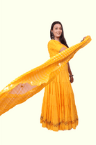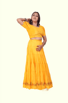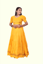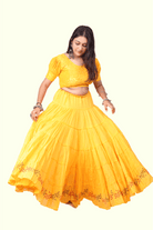 Radiate warmth and elegance with the Yellow Cotton Golden Block Print 20Mtr Skirt from Fabrika16. Soft, breathable cotton forms the base of this voluminous skirt, embellished with delicate golden block prints that bring a festive and graceful charm. Inspired by the values of the 16 Sanskaras, it is perfect for celebrations, weddings, or creating a vibrant ensemble, offering ease of wear with a flowing, comfortable design.